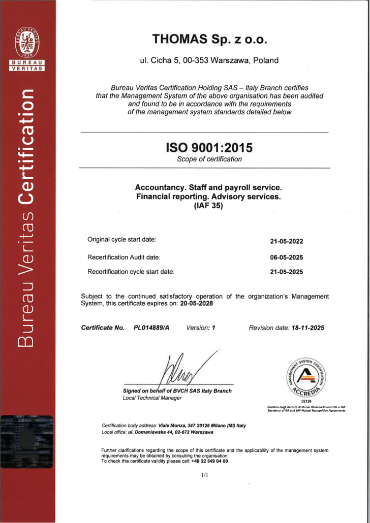 THOMAS Sp. z o.o. operates since 1993. providing services, among others, in the areas of:
